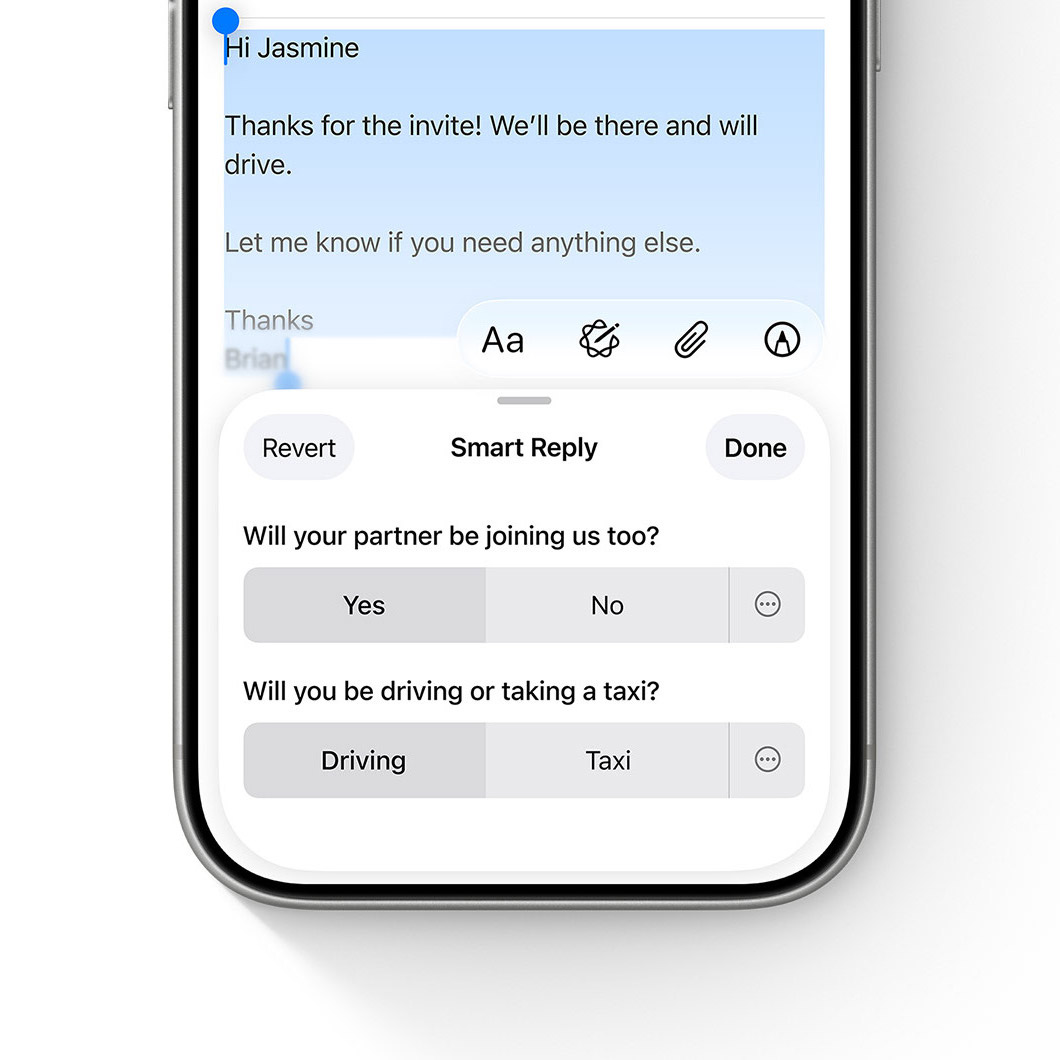 目前,写作工具可以在几乎所有地方(有文本框的地方)唤出使用、智绘表情几乎能在所有可以发送 emoji 的位置创作 Genmoji,信息、邮件、备忘录、照片以及提醒事项等众多第一方应用都能见到 Apple Intelligence 的影子。用户不需要为了使用 AI 而打断当前的工作流,AI 不再是喧宾夺主的中心,而是「如影随形」的辅助。