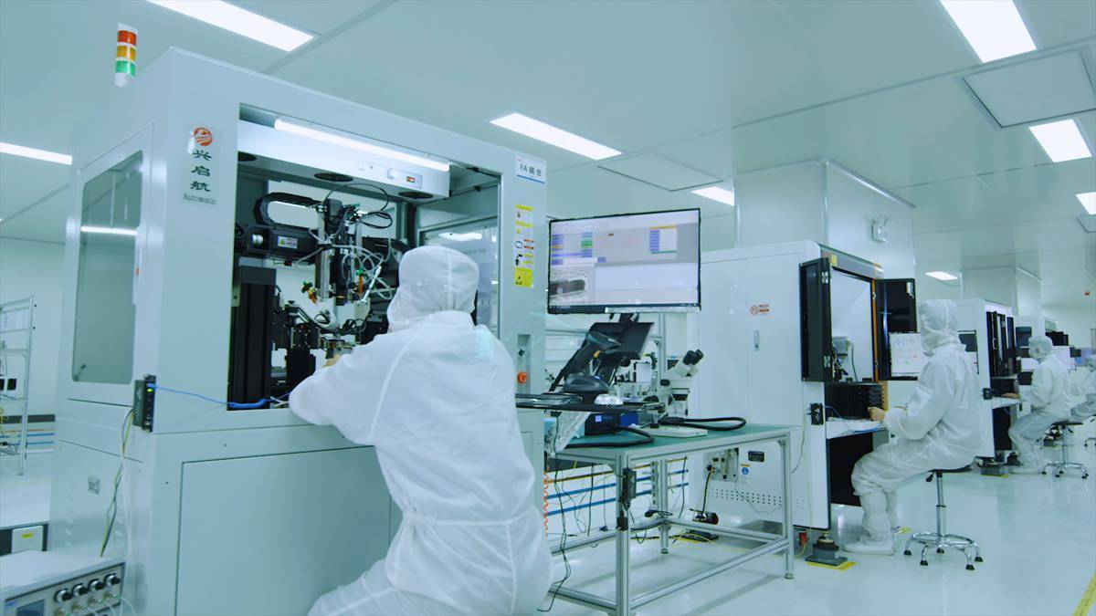 在驿路通硅光引擎车间,工作人员正在有序生产。(受访者提供)