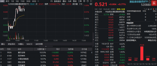 港股医药今日一枝独秀,截至发稿恒指、恒科指均飘绿,创新药龙头多股上涨,百济神州涨超1%,石药集团涨超3%,创新药含量100%的港股通创新药ETF(520880)盘中直线拉升翻红!